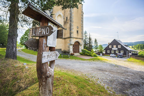 5 km na hráz vodní nádrže Lipno, 8 km do obce Lipno nad Vltavou, centra letních a zimních sportů, stezka v korunách stromů atd.